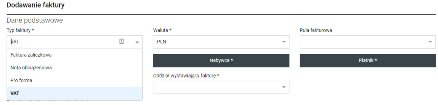 - Oddział wystawiający fakturę